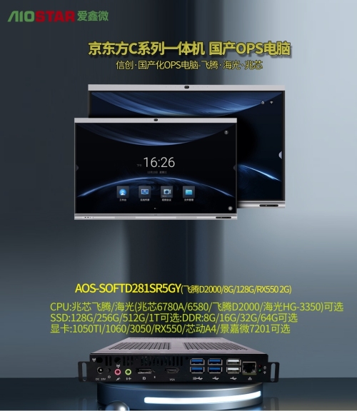针对市场日益强烈的国产化需求,爱鑫微也推出了一系列国产化OPS电脑,AOS-SOFTD281SR5GY(飞腾D2000/8G/128G/RX550 2G),CPU可选(CPU飞腾 FT-D2000,兆芯 KX-6640A、KX-6640MA、KX-6580、KX-U6780A,海光 HG-3230、HG-3350),内存(4GB/8GB/16G 2*SO-DIMM DDR4 2400 MHz memory , Max.64GB),SSD固态硬盘(SATA接口,M.2容量有128/256/512/1T),而且也可以支持显卡(景嘉微 7201 2G/4G(HDMI/HDMI)国产显卡、芯动A4 2-4G/芯动A6 2-4G(HDMI/HDMI)国产显卡、还有就是英伟达10系列显卡),自带无线网卡和WiFi尺是180mm (L) x 195mm (W) x 30mm (H),操作系统WIN10/WIN11/Ubuntu/ Linux/银河麒麟/中科方德/CentOS/UOS。
