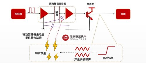 共模噪声通过隔离芯片的寄生电容影响器件可靠性,来源:行家说三代半