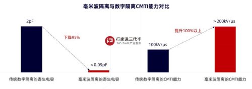 毫米波隔离与数字隔离CMTI能力对比,来源:行家说三代半
