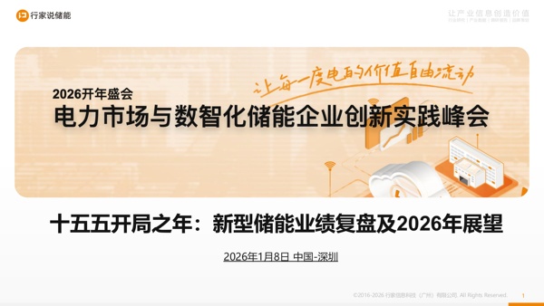 2026行家说开年盛会:电力市场与数智化储能企业创新峰会 - 演讲报告