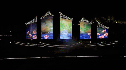 利亚德·励丰文化利用湖心岛、湖面、绿化等空间维度,结合LED艺术装置船,演绎“春湖盛会”水舞声光秀,围绕“知识执光?百花筑梦”、“金鼠闰年?花舞迎春”两个主题、六个篇章,展示中心知识城的发展历程,结合春节、迎春花卉等元素,全方位打造一场文化视觉盛宴。