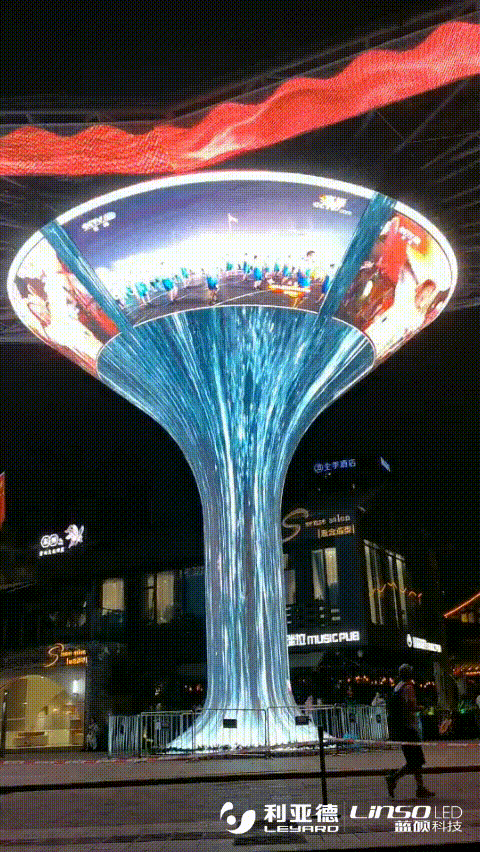蓝硕项目兰桂坊酒杯状创意LED屏,位于裸眼3D公共媒体艺术对岸。显示屏结合当地的人文特征,整合实际的设计理念,与当地整体设计风格相得益彰,极具设计感和艺术性,呈现出虚幻莫测的视觉效果,绘声绘色,使人印象深刻。