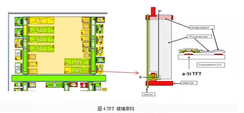 TFT-LCD 架构就如三明治,下层TFT玻璃与上层彩色滤光片中间夹着液晶。而TFT-LCD open cell中段制程也分为四个主要步骤: