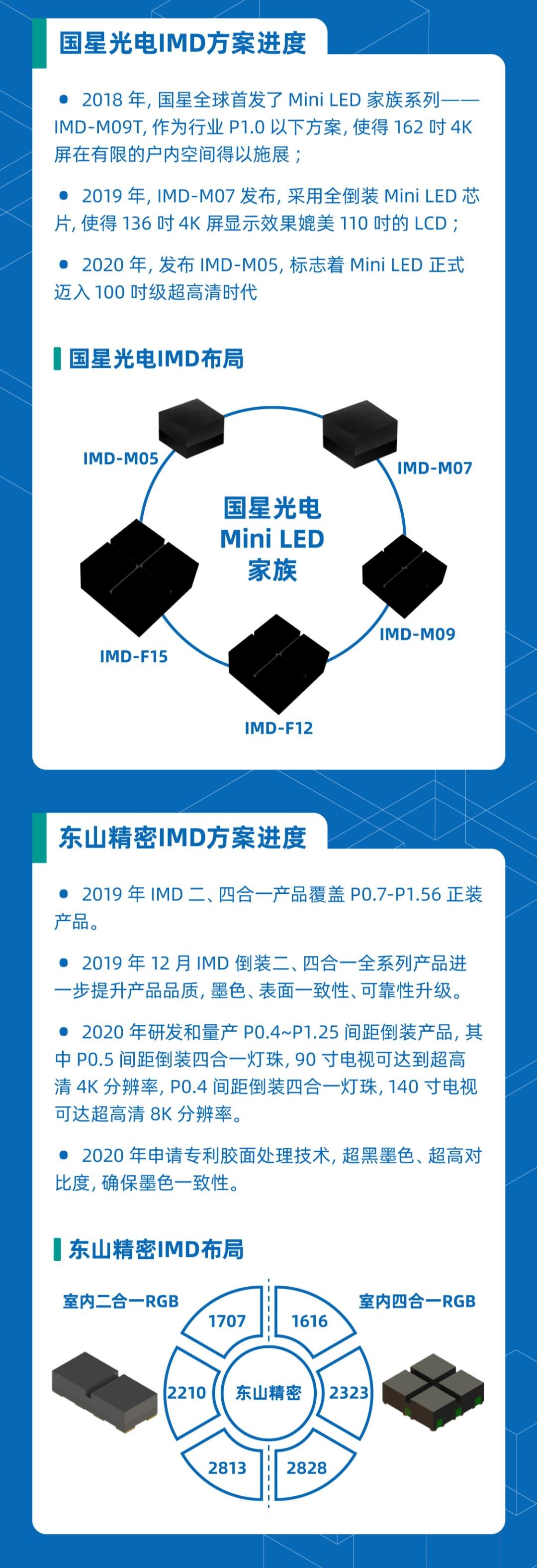 在IMD领域的主要玩家有国星光电、东山精密、兆驰光元、华天科技等。
