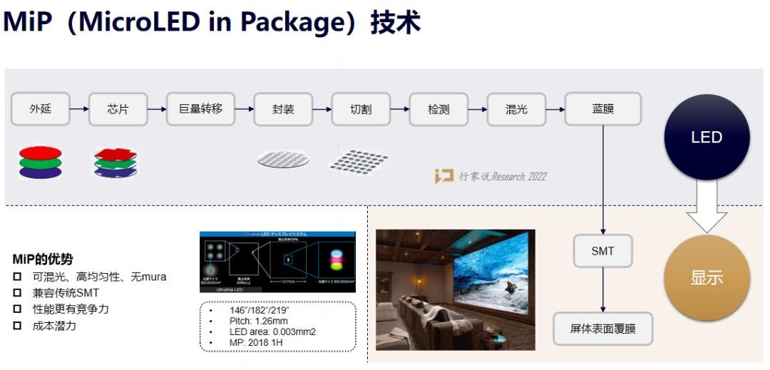 近两年,MiP封装技术引起了关注。如索尼于近日新推出的两款Crystal LED显示器即是使用MiP技术。